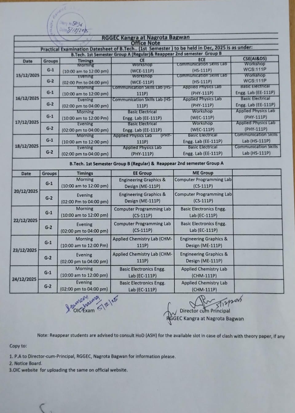 Sh. Priyatu Mandal (IAS) Secretary Technical Education visited RGGEC Nagrota Bagwan